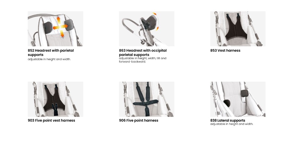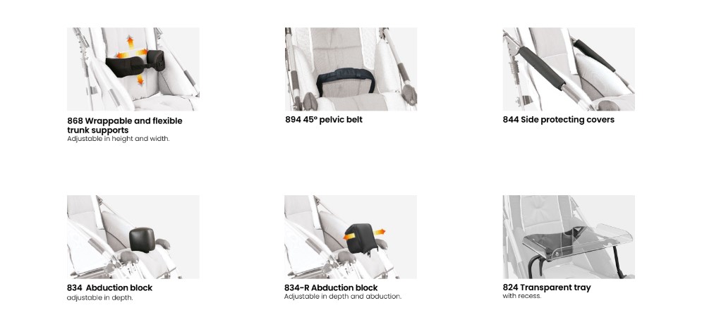 Novus from the Italian company Ormesa is a stroller for children and kids with postural needs available in two sizes. Equipped with a folding aluminum frame, it has been designed to ensure maximum comfort to the user: the seat is lightly tilted, while the cushion – padded and removable – is highly breathable. The wheels are provided with drum brakes; they can be easily removed with a snap-out system, to facilitate transport.