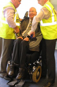 Με τη βοήθεια του χειριστή και χρησιμοποιώντας τις λαβές που βρίσκονται στο πανί, δημιουργείται ένα κάθισμα για τη μεταφορά του χρήστη.